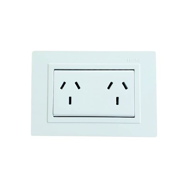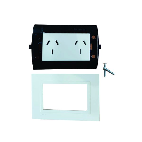 Tapa blanca rectangular + Bastidor de 3 módulos + 1 modulo con 2 tomacorrientes