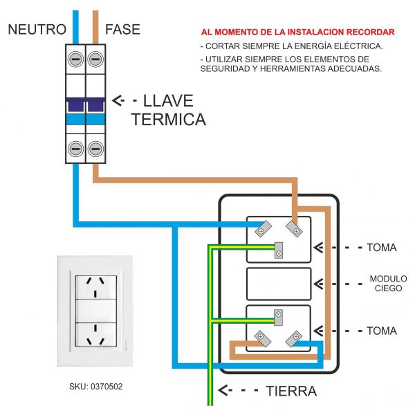 SET ARMADO TOMACORRIENTES DOBLE 10A LINEA URBANA EXULTT