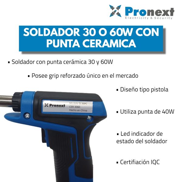 SOLDADOR 30 O 60W CON PUNTA CERAMICA PRONEXT