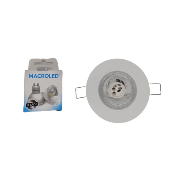 SPOT REDONDO BASTIDOR BLANCO + ZOCALO + DICRO LED FRIA 7W