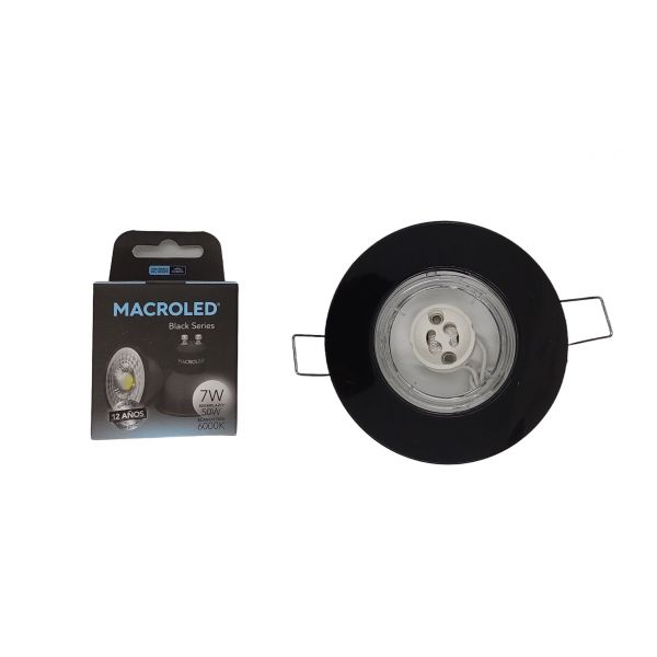 SPOT REDONDO BASTIDOR NEGRO + ZOCALO + DICRO NEGRA LED 7W FRIA