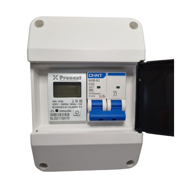 TABLERO + TERMICA 2X32 + MEDIDOR MONOFASICO CON RESET 65A WA 1200 PRONEXT