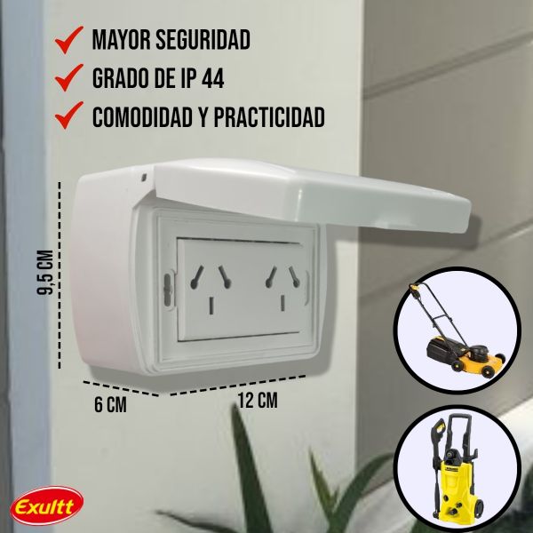 TAPA CAPSULADA EXTERIOR RIGIDA APLICAR + TOMACORRIENTE DOBLE ESPECIAL EXULTT