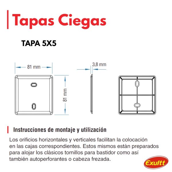 TAPA CIEGA BLANCA 5X5 EXULTT