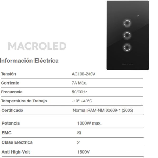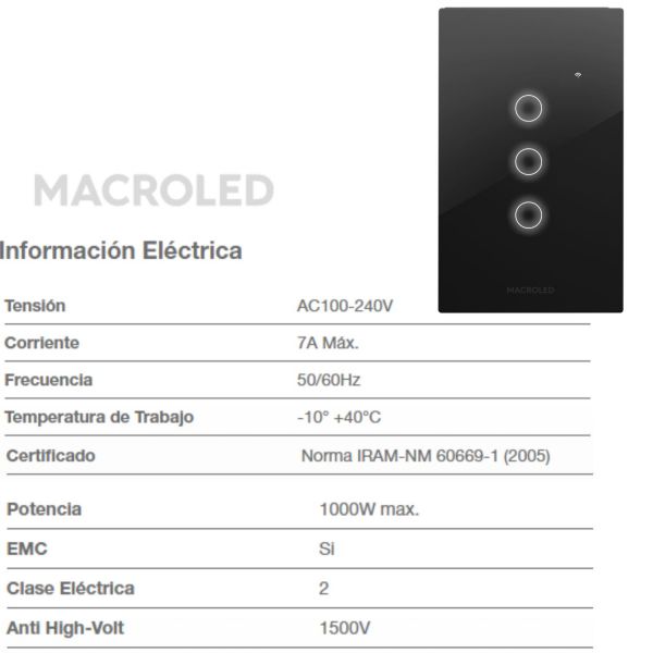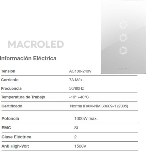 TECLA SMART ROMA MACROLED 3 CANALES CON CAPACITOR