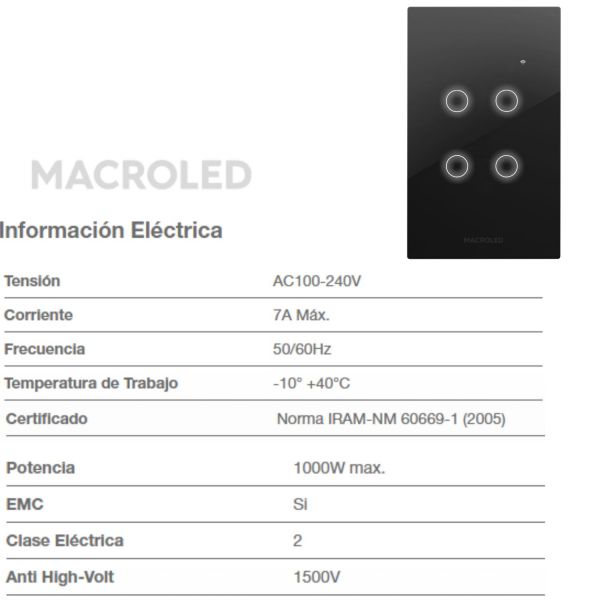 TECLA SMART ROMA MACROLED 4 CANALES CON CAPACITOR