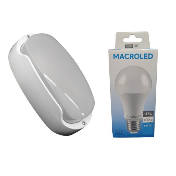 TORTUGA EXTERIOR BLANCO STAR BOX + LAMPARA 14.5W FRIA E27 MACROLED