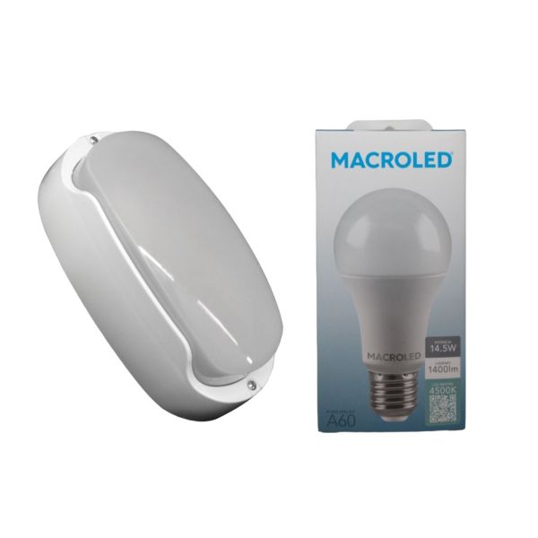 TORTUGA EXTERIOR BLANCO STAR BOX + LAMPARA 14.5W NEUTRO E27 MACROLED