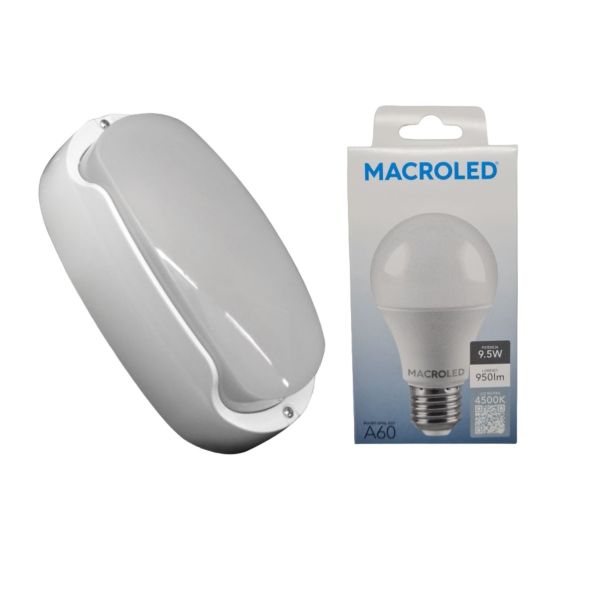 TORTUGA EXTERIOR BLANCO STAR BOX + LAMPARA 9.5W NEUTRA E27 MACROLED