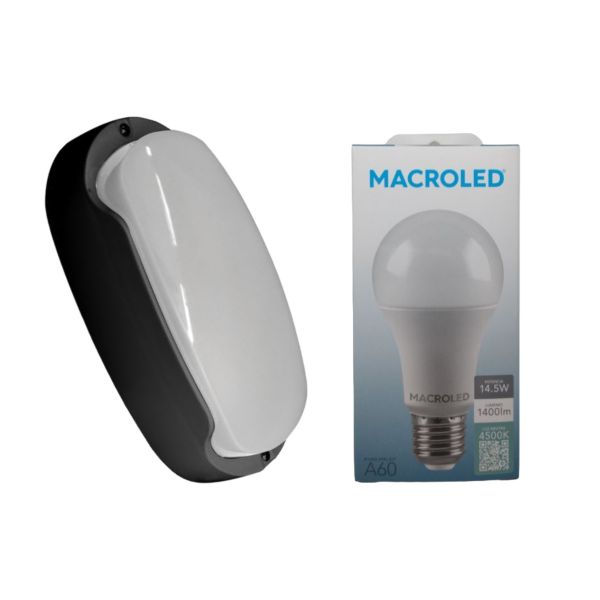 TORTUGA EXTERIOR NEGRO STAR BOX + LAMPARA 14.5W NEUTRO E27 MACROLED
