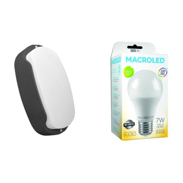 TORTUGA EXTERIOR NEGRO STAR BOX + LAMPARA 7W CALIDA E27 MACROLED