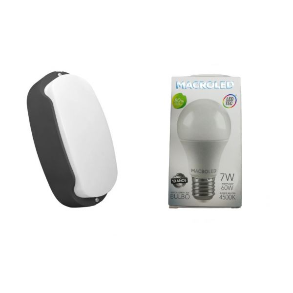 TORTUGA EXTERIOR NEGRO STAR BOX + LAMPARA 7W NEUTRO E27 MACROLED