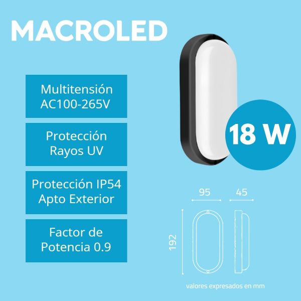 TORTUGA OVALADA 18W LED NEGRO MACROLED