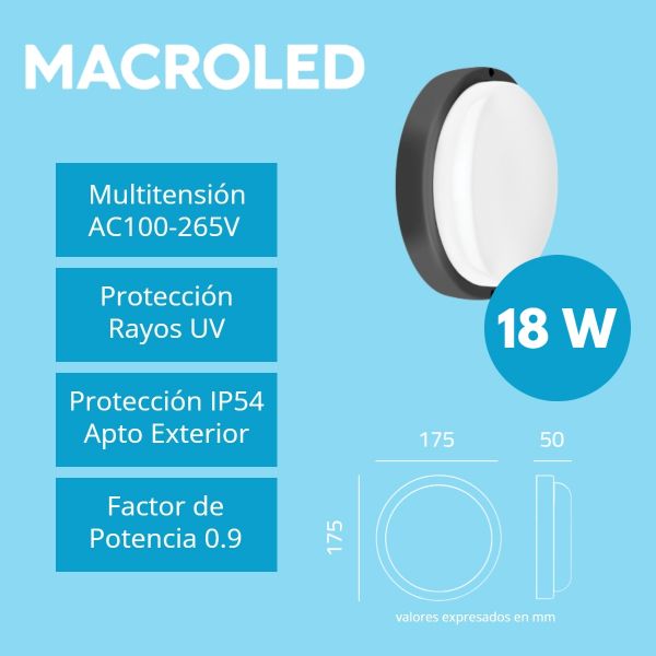TORTUGA REDONDA 18W LED NEGRO MACROLED
