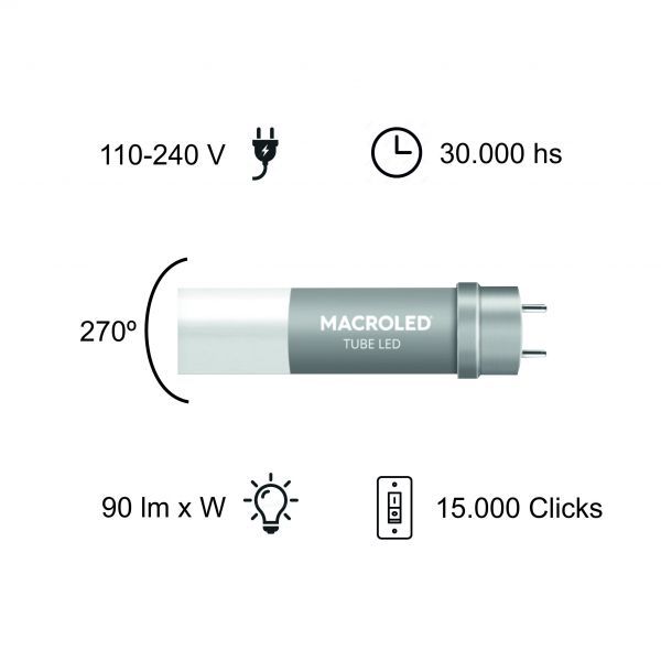 TUBO LED 18W T8 1.20 MTS DE PVC NANO MACROLED