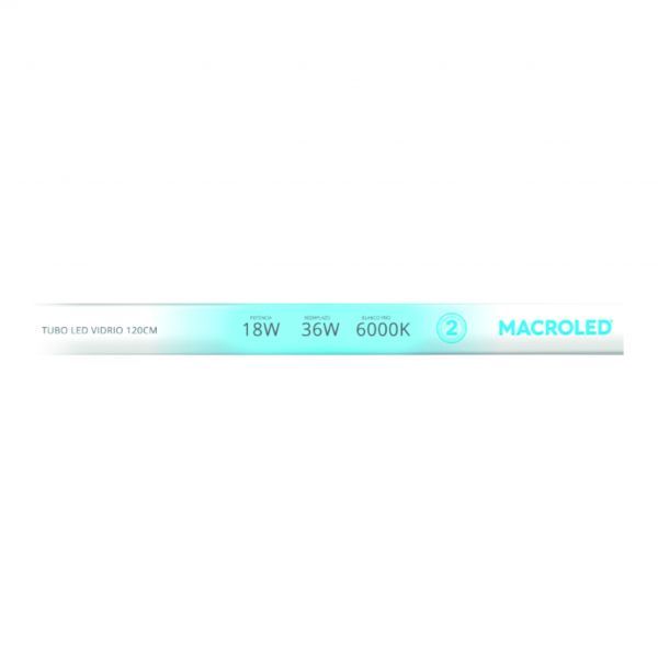 TUBO LED 18W T8 1.20 MTS VIDRIO MACROLED