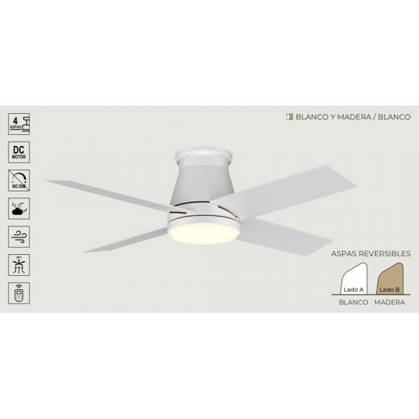 VENTILADOR DE TECHO BLANCO Y MADERA 411A CON LUZ 42” MOTOR DE ALTA EFICIENCIA LEUK