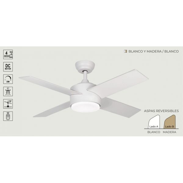 VENTILADOR DE TECHO BLANCO Y MADERA 441A CON LUZ 44” MOTOR DE ALTA EFICIENCIA LEUK