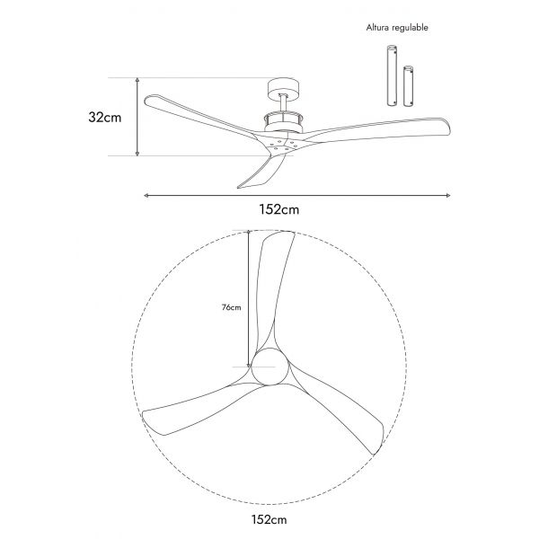 VENTILADOR DE TECHO NEGRO DOHA SIN LUZ CON ASPAS WALNUT SMART WINDSTYLE