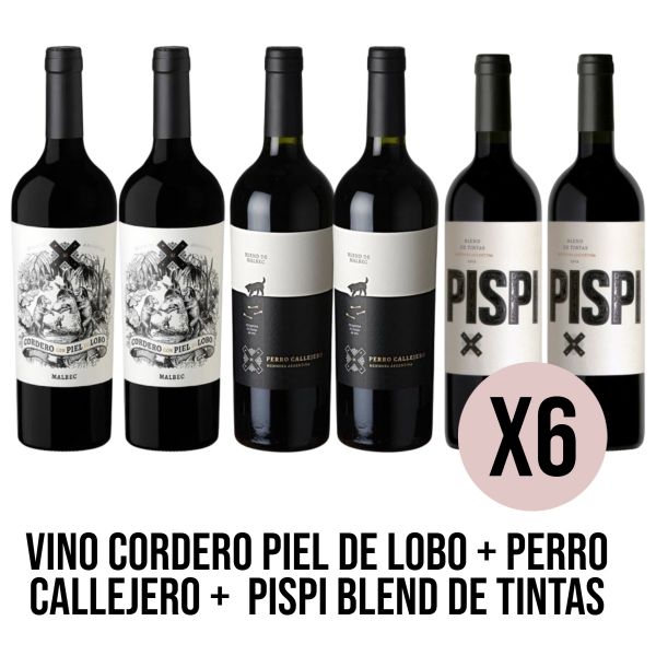 VINO 2 CORDERO PIEL DE LOBO + 2 PERRO CALLEJERO + 2 PISPI BLEND DE TINTAS
