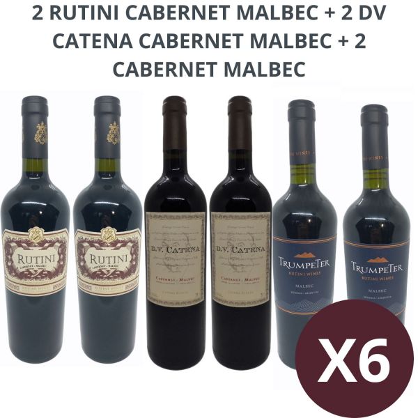 VINO 2 RUTINI CABERNET MALBEC + 2 DV CATENA CABERNET MALBEC + 2 TRUMPETER MALBEC