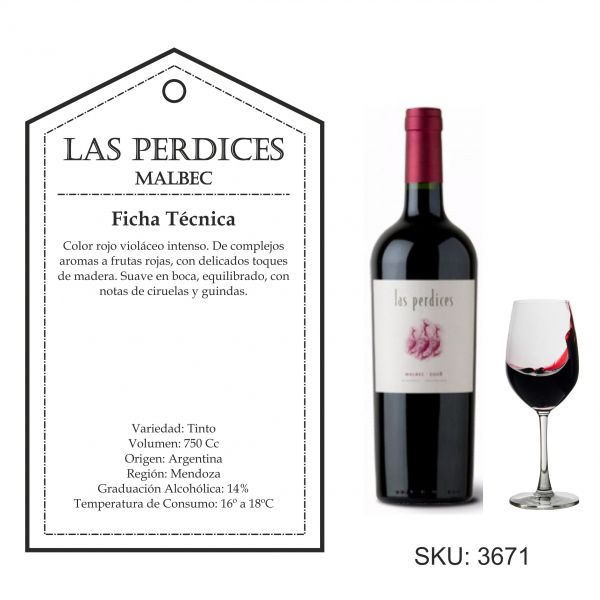 VINO LAS PERDICES MALBEC TINTO 750 CC