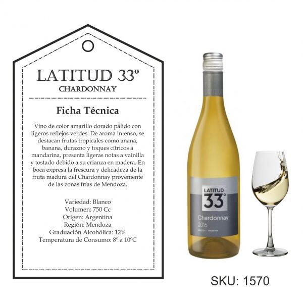 VINO LATITUD 33º CHARDONNAY 750 CC