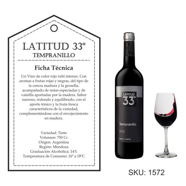 VINO LATITUD 33º TEMPRANILLO 750 CC