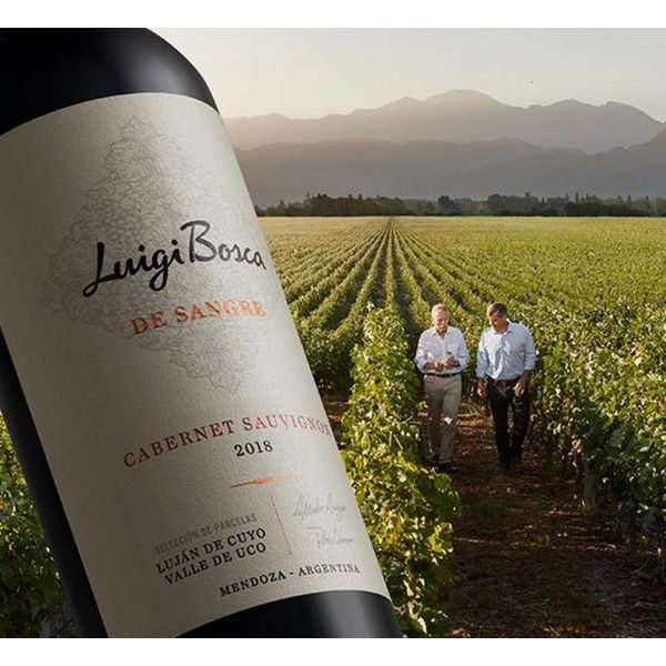 LUIGI BOSCA DE SANGRE · Red Blend es un tinto rojo granate brillante con aromas muy atractivos a fruta negra, pimienta negra y notas de té en armonía, equilibrados con leves tonos ahumados de la crianza en roble. En boca se lo percibe compacto, maduro, con taninos incipientes y textura redonda. Llena la boca con fruta que denota muy buena definición de terroir. Gran carácter y acidez, y final largo, complejo y profundo. Composición: Cabernet Sauvignon 78%, Syrah 12%, Merlot 10%.