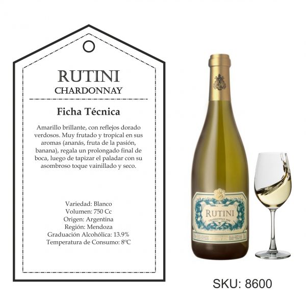 VINO RUTINI CHARDONNAY BLANCO 750 CC X4