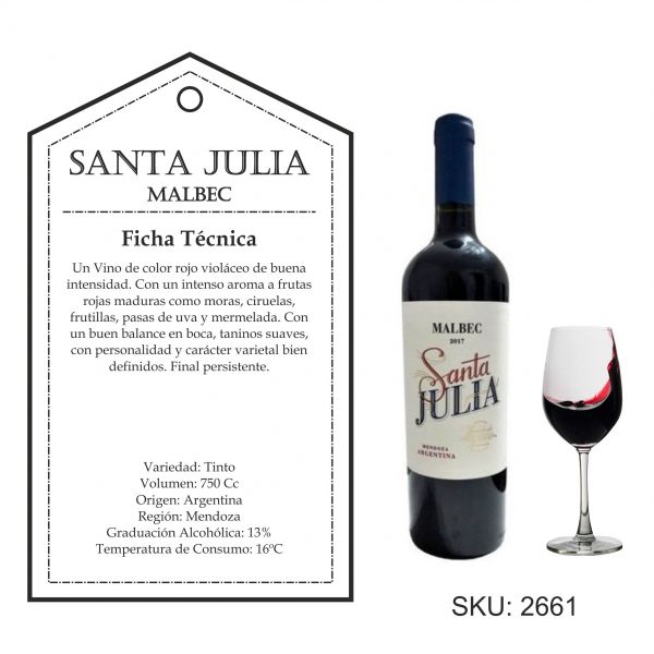 VINO SANTA JULIA MALBEC 750 CC
