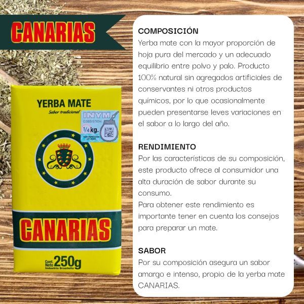 YERBA MATE CANARIAS 250 GR X 3 UNIDADES + EDULCORANTE HILERET MATE LIQUIDO 200 ML