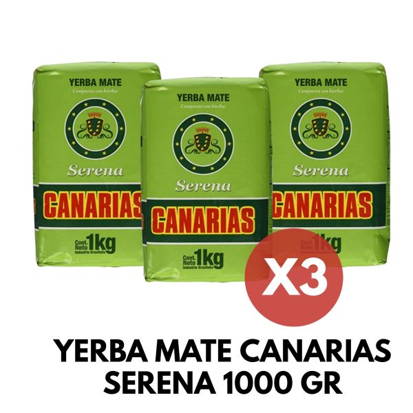 YERBA MATE CANARIAS SERENA 1KG X 3 UNIDADES + EDULCORANTE HILERET MATE LIQUIDO 400 ML