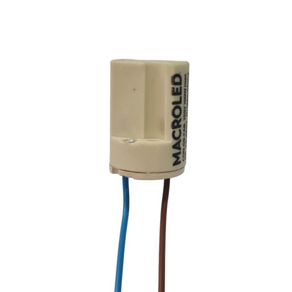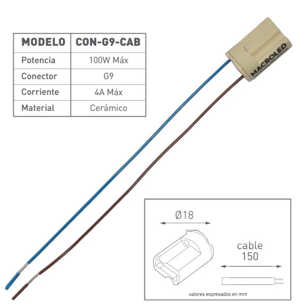 El zócalo cerámico G9 de Marcroled, modelo CON-G9-CAB, es una solución eficiente y segura para la conexión de lámparas halógenas o de tipo LED con base G9.