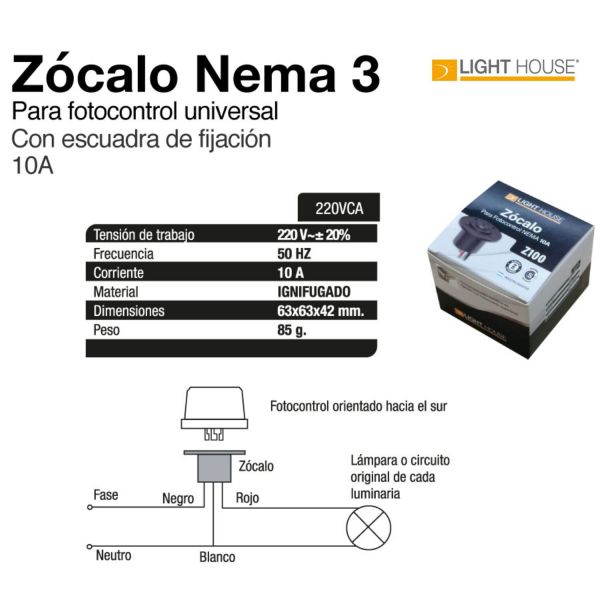 Apto todo tipo de Fotocélulas con enchufe Nema 3.